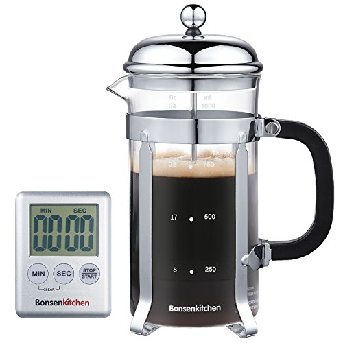 Bonsenkitchen French Press Coffee & Tea Maker, 8 Cup/32 oz, 304 Stainless-Steel Lid, Presser and Frame, Heat Resistant Borosilicate Glass Pot, A Kitchen Timer Included (CP8871) - Thank you for visiting this site. This review will we made about "Bonsenkitchen French Press Coffee & Tea Maker, 8 Cup/32 oz, 304 Stainless-Steel Lid, Presser and Frame, Heat Resistant Borosilicate Glass Pot, A Kitchen Timer Included (CP8871)", if you are currently looking for the article on it, it means you need to read this review now.