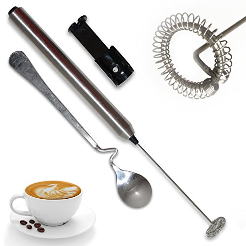 Above this is the one of the product images of the Milk Frother Handheld Battery Operated Electric Foam Maker for Coffee, Cappuccinos, Latte, Hot Chocolate, Durable Mixer with Stainless Steel Whisk, Stand and Mix Spoon Include. To get other pictures, you can click on the image above.